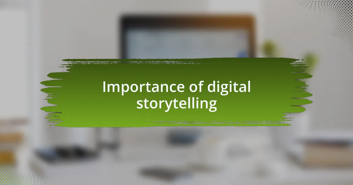The importance of digital storytelling lies in its ability to reach wider audiences through platforms that offer greater accessibility. I remember sharing my first digital story on social media and receiving feedback from friends I’d never realized were interested in my writing. It struck me then how digital spaces bridge gaps, allowing stories to traverse geographical and cultural boundaries that traditional storytelling often can’t manage.