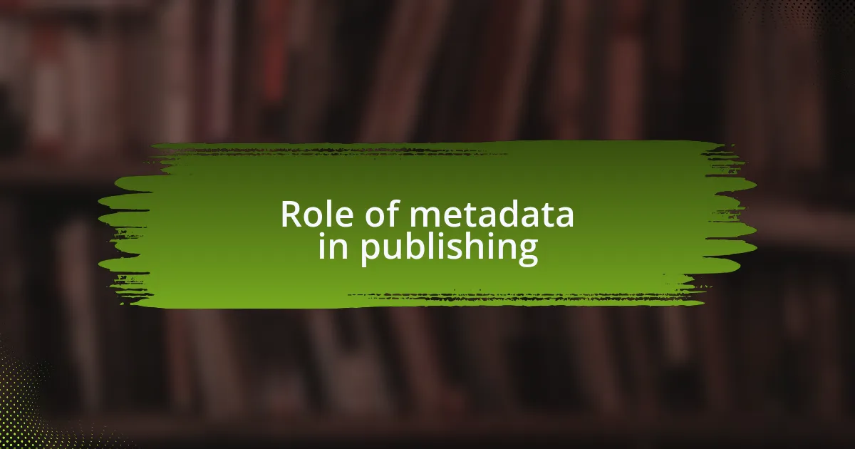 Metadata plays a crucial role in the publishing landscape by acting as a bridge between authors and their audiences. I remember when I stumbled upon a charming indie novel; it was the metadata that caught my eye first—the unique genre tags and descriptions made me curious. How many readers might be missing out on hidden gems simply because the metadata didn’t speak to them?