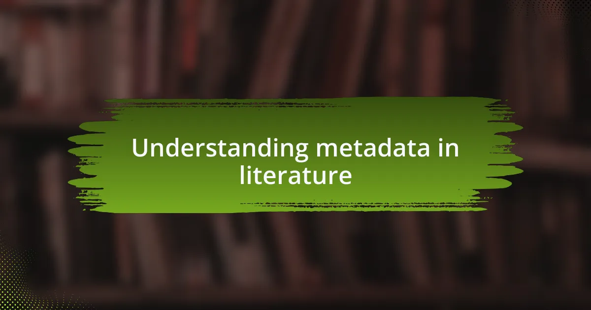 Metadata in literature serves as a vital framework that enhances the reader’s journey. When I think about the last novel I read, I remember spending time getting lost in its rich narrative, but the metadata—like the author’s name, genre, and publication date—shaped my expectations and understanding. Isn’t it fascinating how a few descriptive elements can lead a reader to the perfect book?